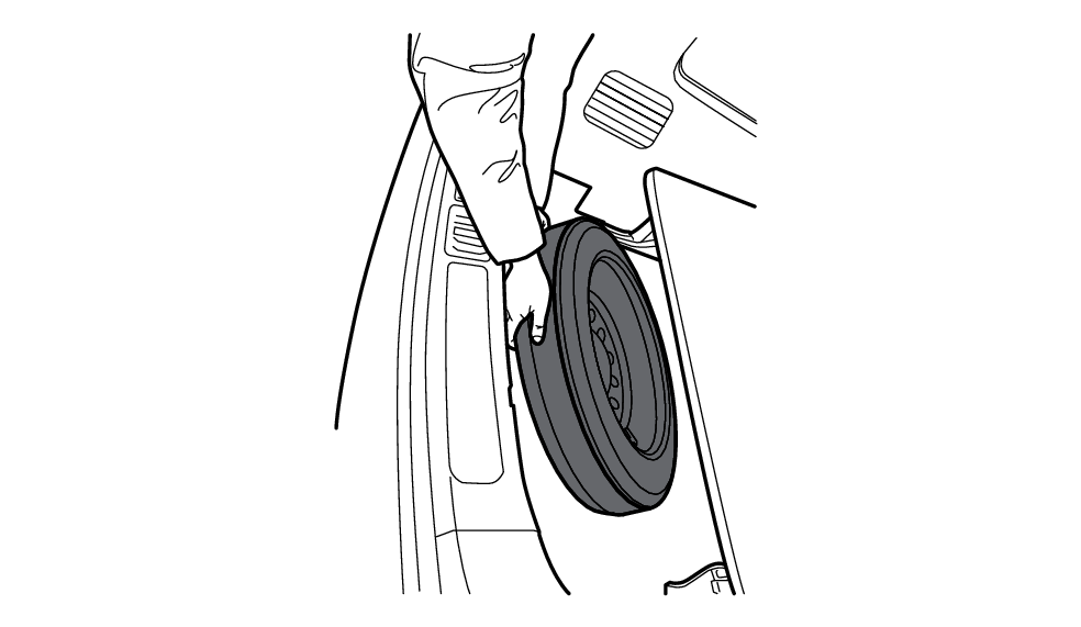 一定要将换下的车轮、千斤顶、车轮螺母扳手收至指定位置。若随意放置或放置不当,则它们可能在冲击或急刹时移动,造成破坏或人身伤害。