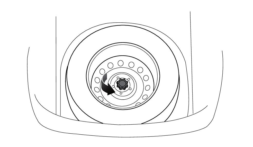 4. 打开车轮螺母扳手,顺时针方向旋转车轮螺母扳手,直至所需更换车轮恰好离开地面。