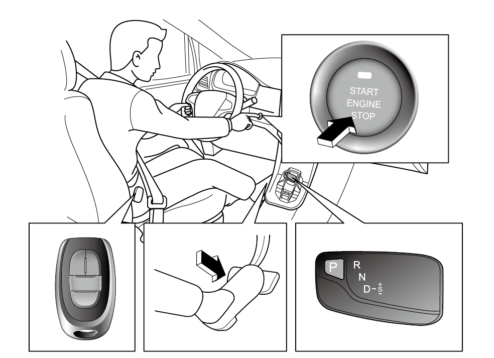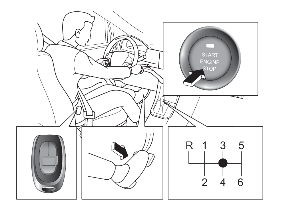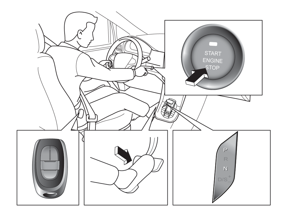 当遥控钥匙在车内时,满足起动条件,此时按一下启停开关即可发动发动机。