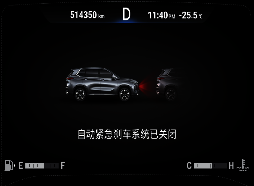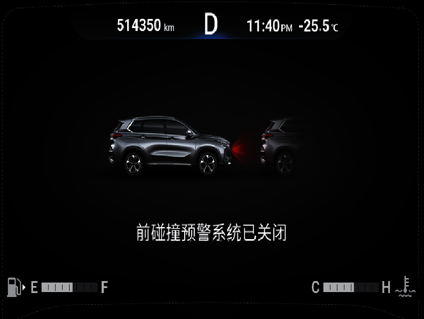 当车辆可能存在碰撞危险时,组合仪表信息中心会显示提示: