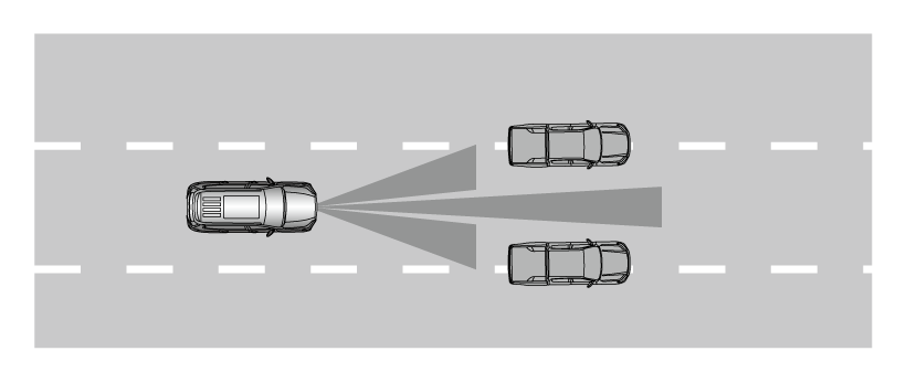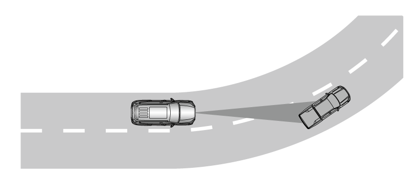 相邻车道的车辆驶入本车行驶方向前方时若未进入传感器监控区,传感器可能探测不到这些车辆,从而导致自适应巡航控制反应滞后。驾驶员需密切关注相邻车道的车辆动作,必要时应主动干预。