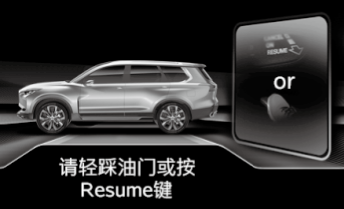 RES+:增加存储的车速或重新启用自适应巡航控制并恢复存储的车速。