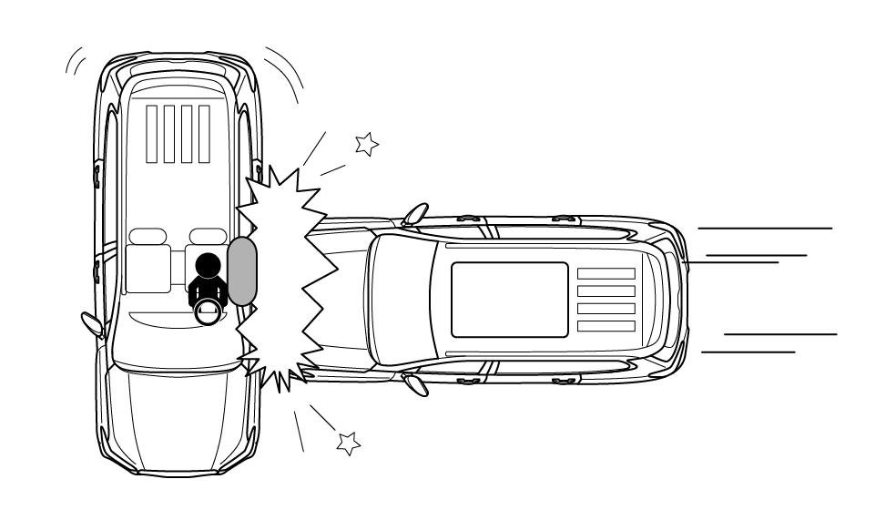 • 车辆与较高车速的普通乘用车发生侧面碰撞。