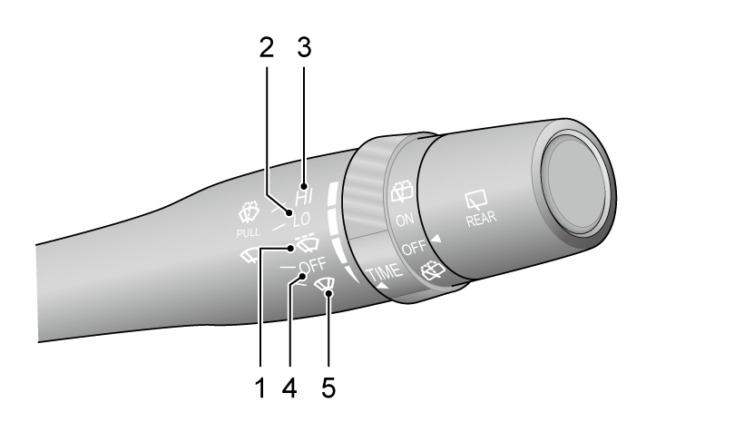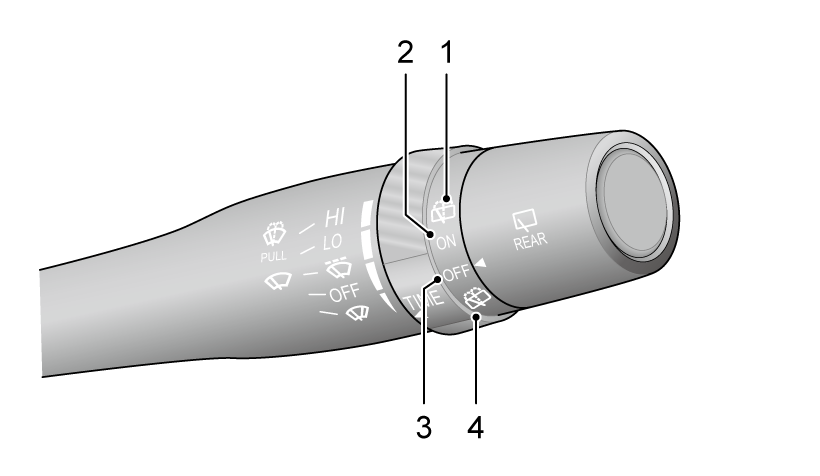位置1,4–:喷水器喷水并且雨刮器运转。