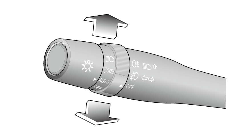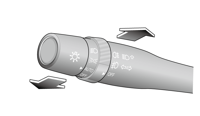 将拨杆开关推离方向盘,以将前大灯从近光改为远光。将拨杆开关拉近方向盘,以回到近光位置。