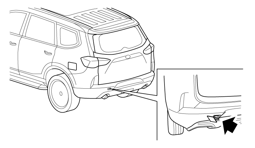若需从后方牵引车辆,将牵引环堵盖从后保险杠左侧处取下,将放置在随车工具包内的后牵引环拧至后保险杠。