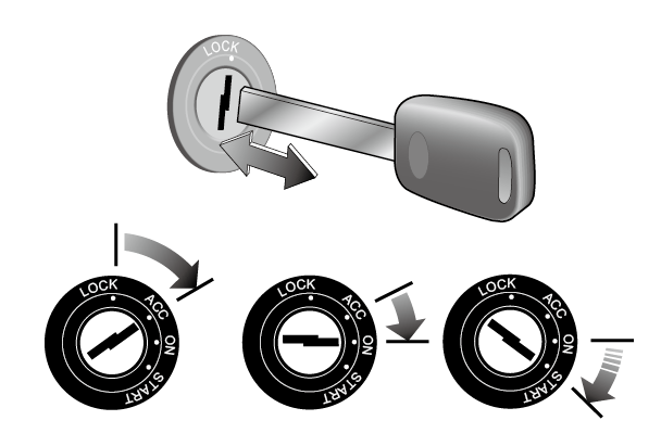 切勿长时间将钥匙留在“ACC(解锁)”位置,以防止不必要的电池电量流失。