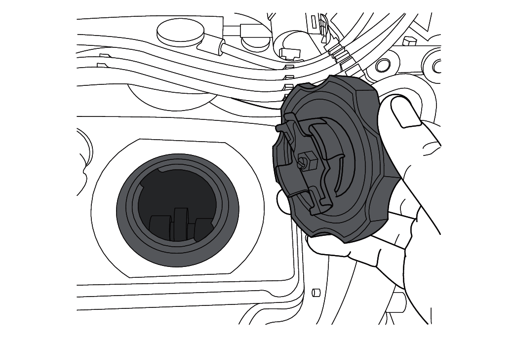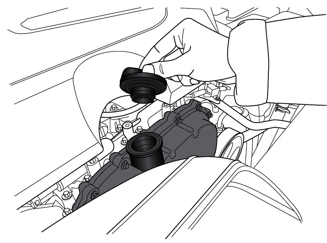 如需要加注,请旋下机油加油盖,多次少量地加入规格正确的新机油。等待机油滴入到油槽,然后重复油位检查过程。必要时再加注,直至油位正确。