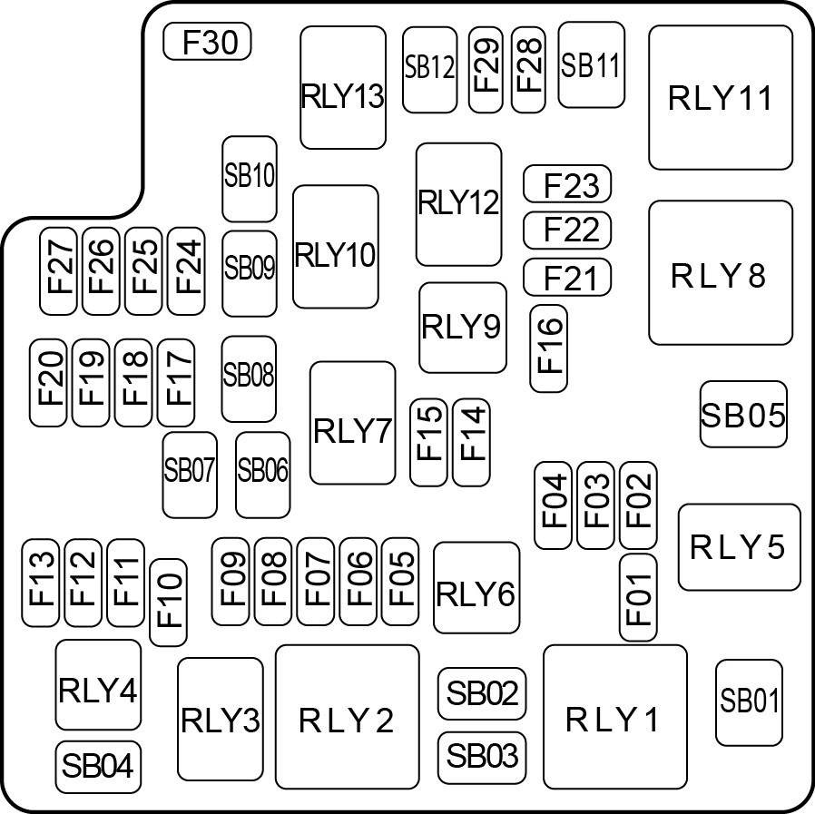 驾驶舱保险丝盒内的保险丝可通过驾驶员侧下储物盒盖背面标签加以识别。