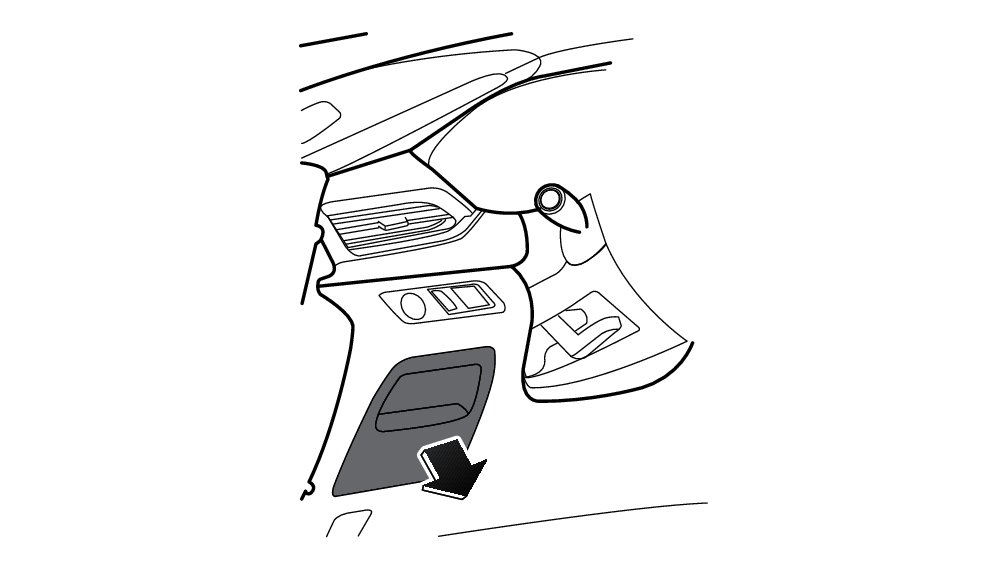 驾驶舱保险丝盒位于驾驶员侧下储物盒的后方。