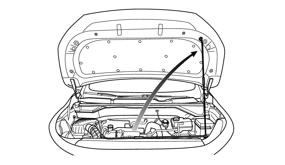 拿起支撑杆,然后将末端装入前舱盖内的安装槽中。