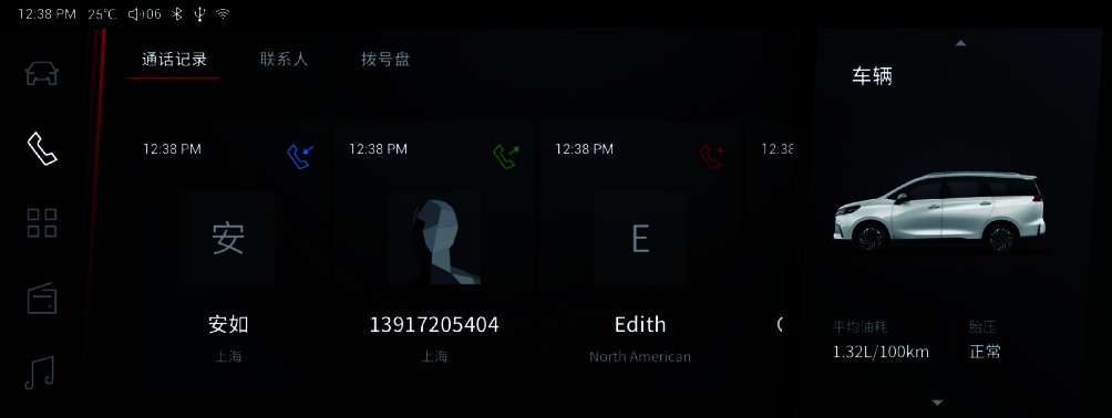 上图从左至右分别为:音乐小卡,收音小卡,车辆健康小卡,车辆异常小卡。