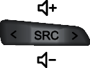 :音源控制开关。按下SRC切换收音机/MP3播放界面;向上按音量增加,向下按音量减小;短按