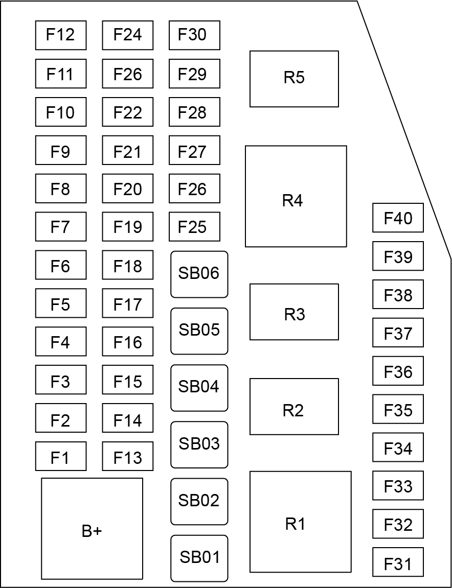 驾驶舱保险丝盒内的保险丝可通过驾驶员侧下储物盒盖背面标签加以识别。