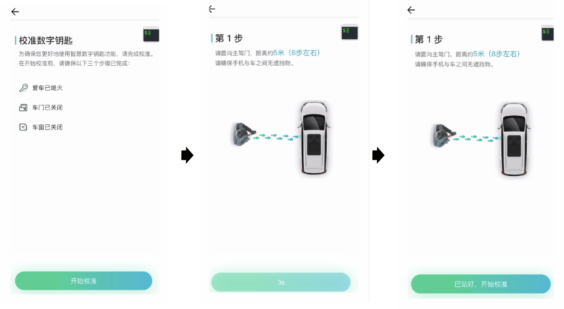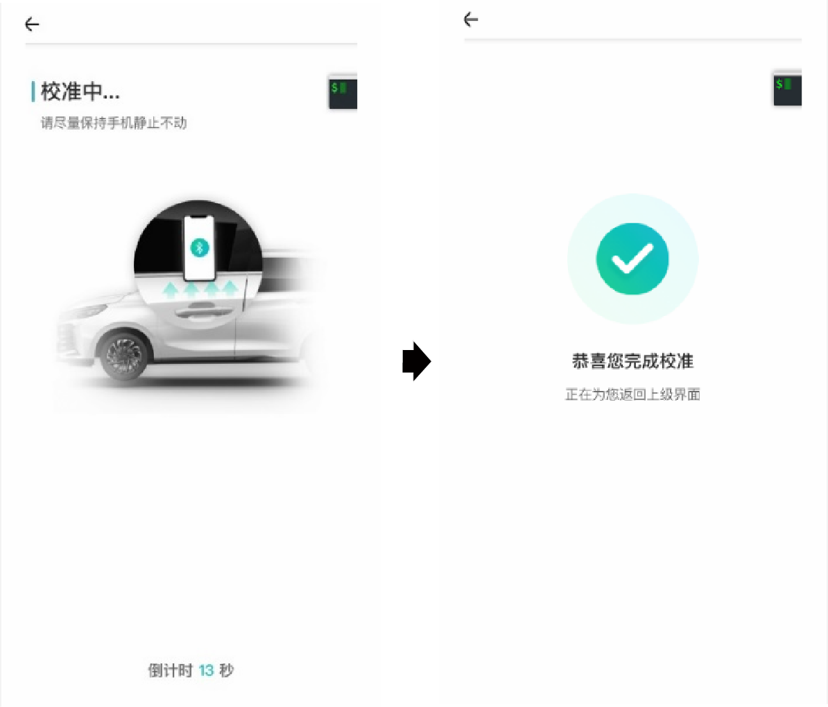 为保证蓝牙钥匙功能的正常使用,大部分手机在首次蓝牙连接成功后最好进行一次校准,蓝牙经过校准后,蓝牙钥匙相关功能的成功率会有较大提升。少部分手机已做过标定,在首次蓝牙连接成功后不会弹窗提醒蓝牙校准,可直接使用。