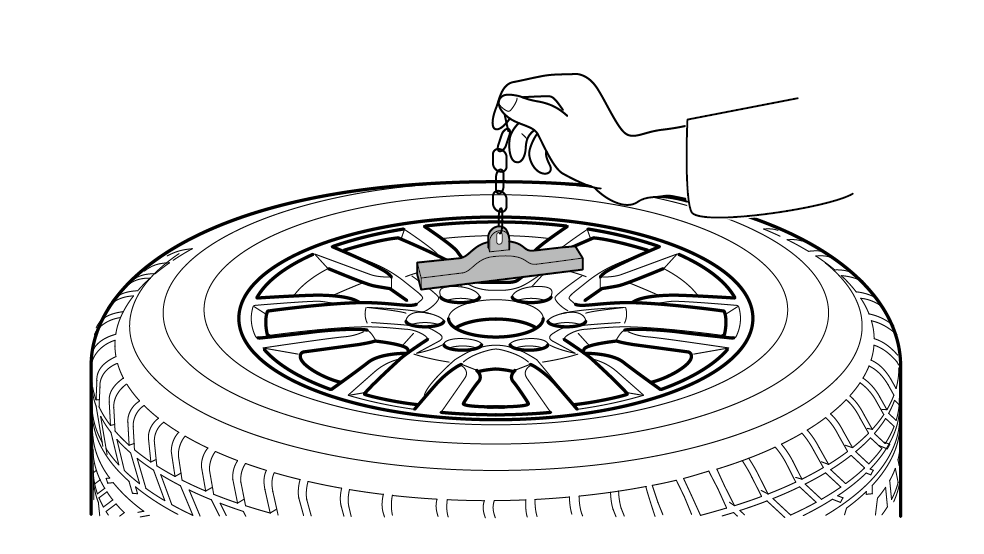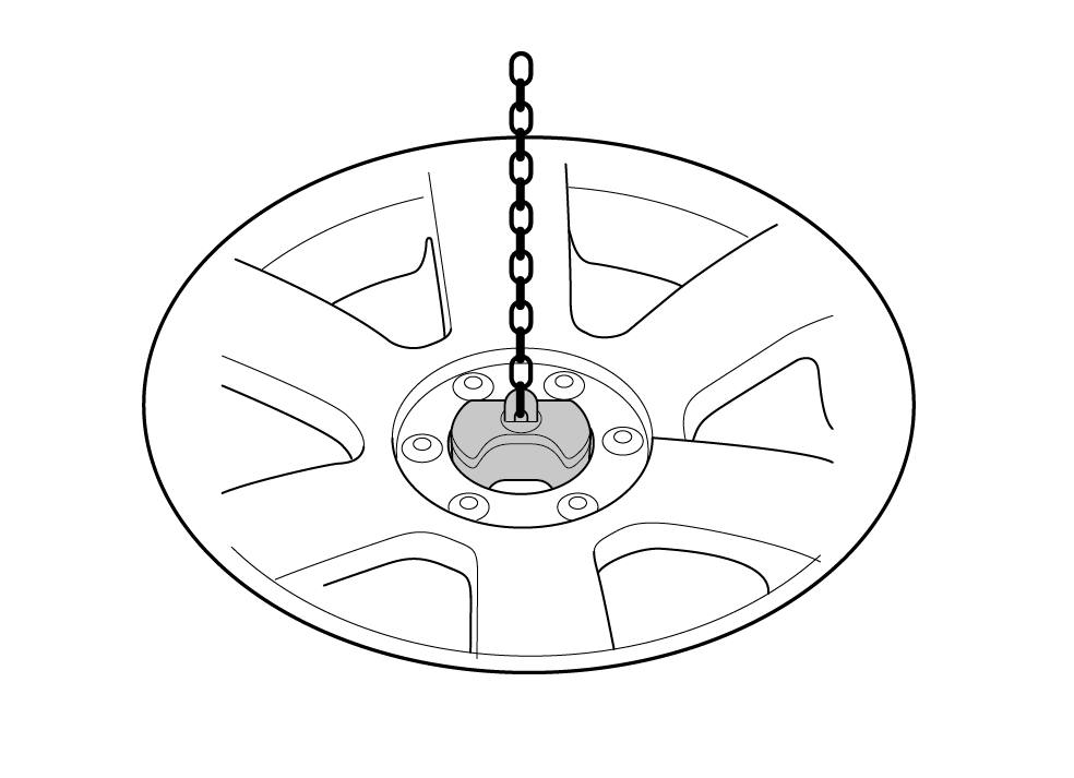 将车轮置于备胎架后,请检查车轮安装是否牢固。如车轮松动,可能会因振动而脱落并引发事故。