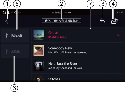 点触USB音乐的图标,进入USB音乐播放界面操作。