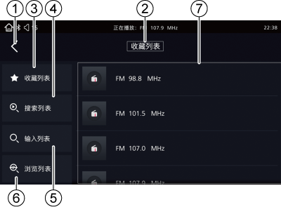 可以上下拖动来浏览所有频点;点触某一频点,就播放此频点并跳转收音播放界面。