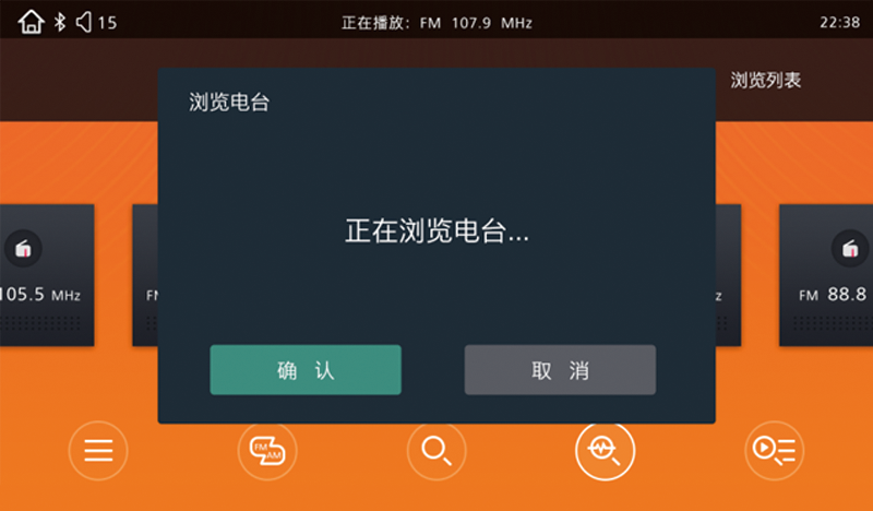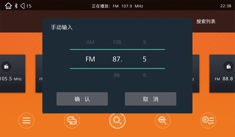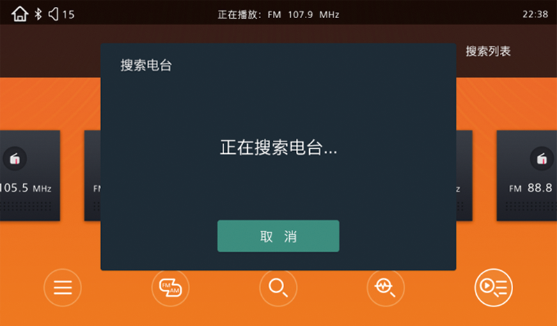 点触主界面上的收音模式图标,进入收音界面,如下图: