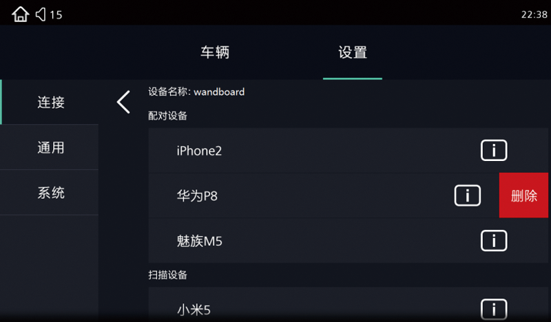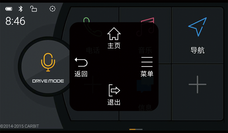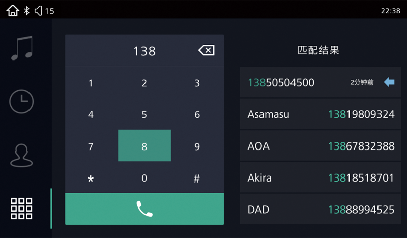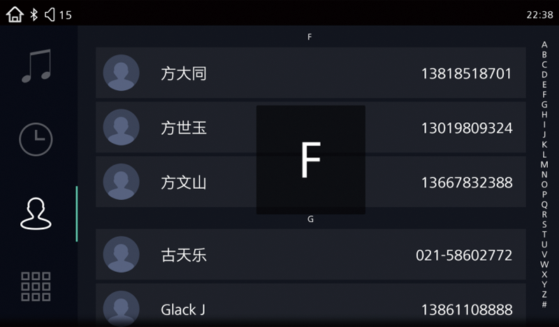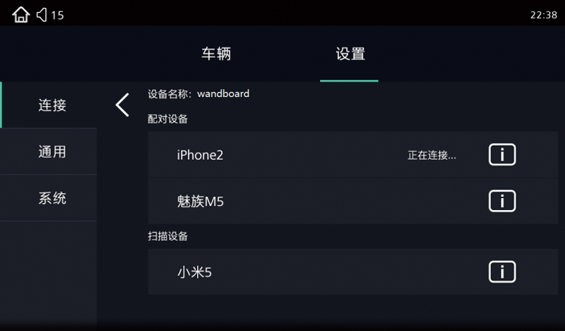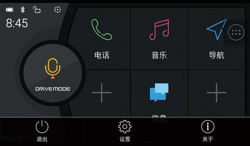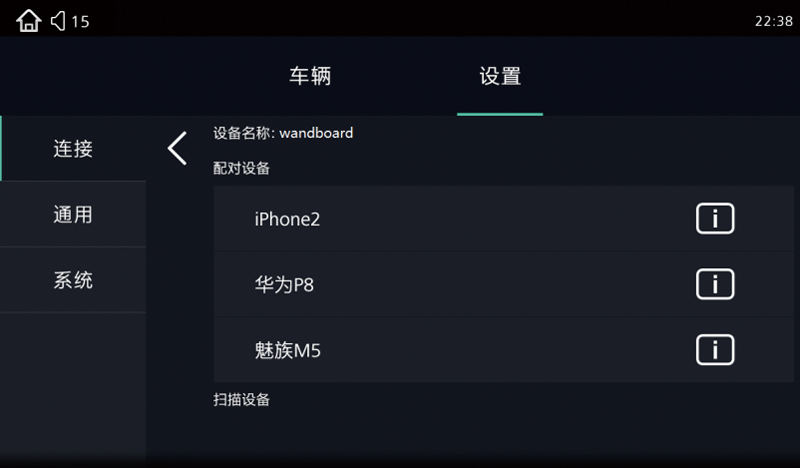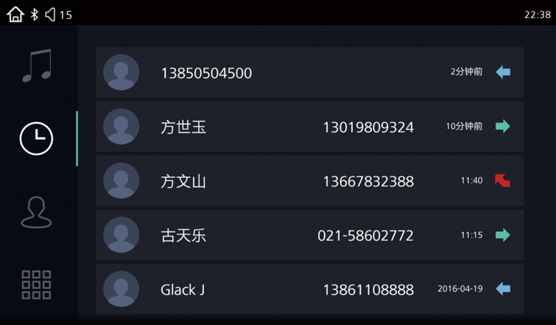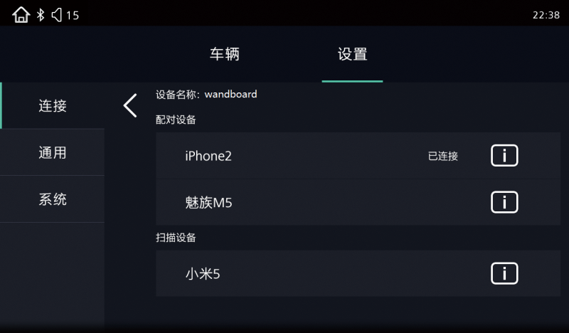 显示蓝牙、USB的连接状态,当处于连接状态时,高亮显示相应图标。处于未连接时,则不显示相应图标。