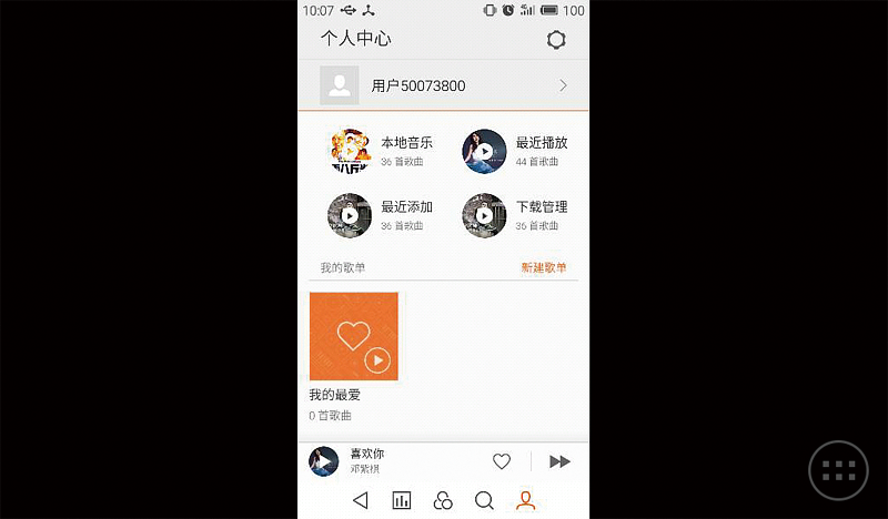 可以上下拖动来浏览所有曲目;点触某一曲目,就播放此曲目并跳转音乐播放界面。