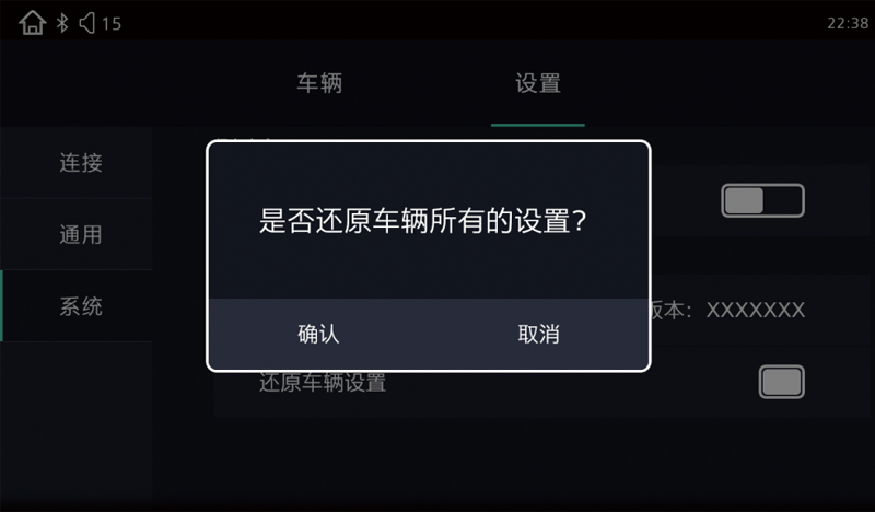 点触【确认】,将会把您之前所设置的各项参数恢复到出厂设置。点触【取消】,会保留手动设置的各参数。