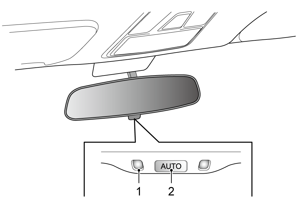 对于配备电动调节内后视镜的车辆,按下后视镜底部的按键(2),黄色LED灯亮起,后方感光传感器开始工作,以减少夜晚行车时的反射眩光。再按下按键(2),黄色LED灯熄灭,后方感光传感器停止工作。