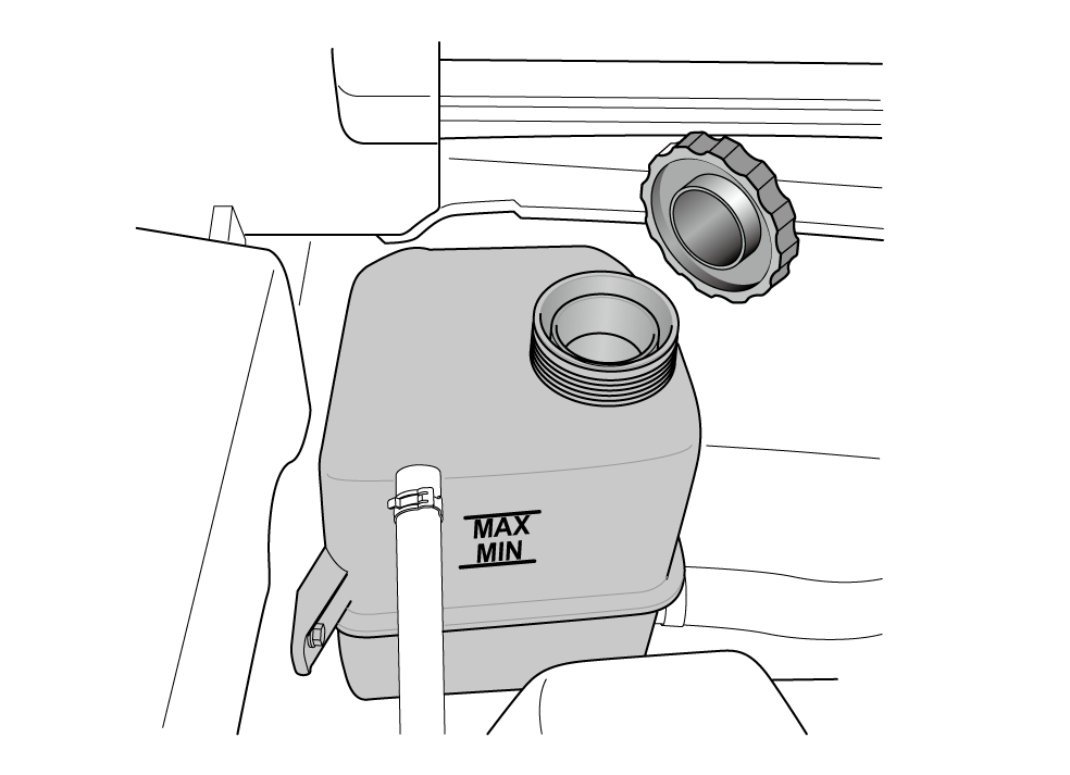 液位可在冷却液储液罐中看到,正常液位应该位于最高量“MAX”与最低量“MIN”标记之间。