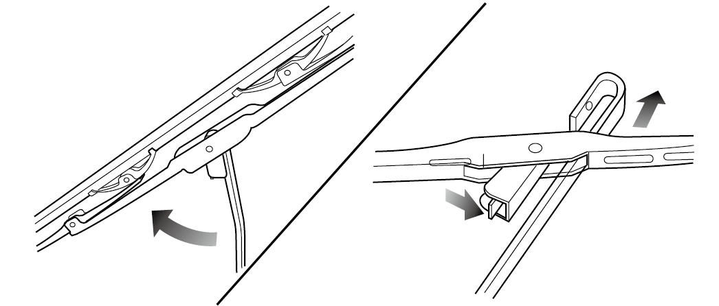 — 从风窗玻璃上提起刮水器支臂,然后使刮片与支臂保持直角。
