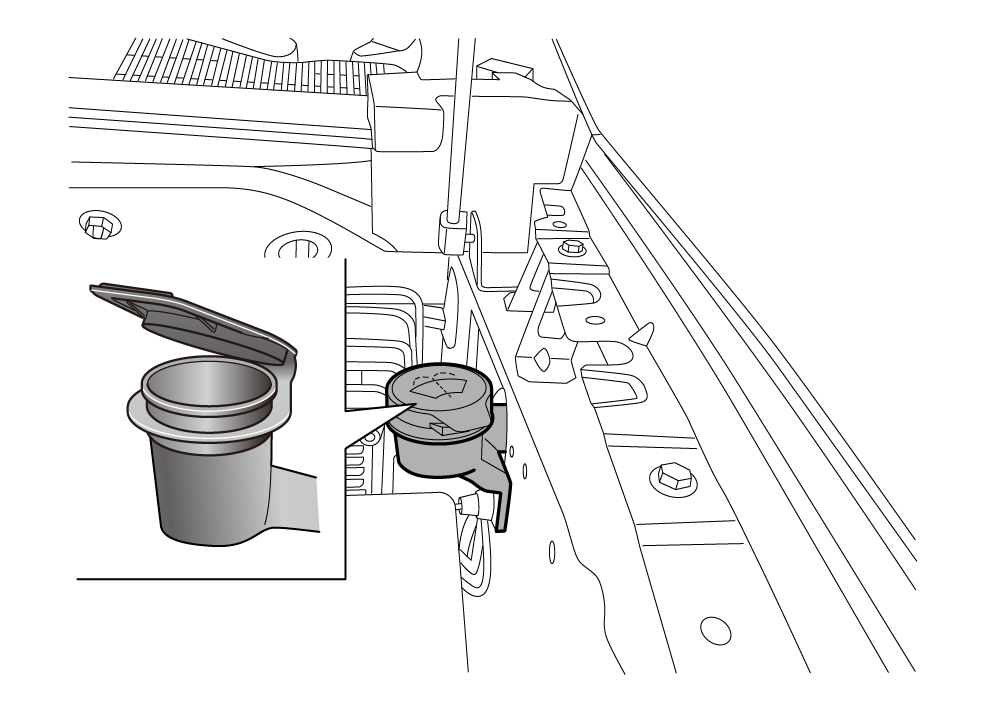 挡风玻璃清洗洗涤液储液罐位于发动机舱内。如需加注,请提起加液盖前部添加洗涤液,然后盖好加液盖。洗涤液的规格请参阅一般技术参数章节中的推荐的油液
