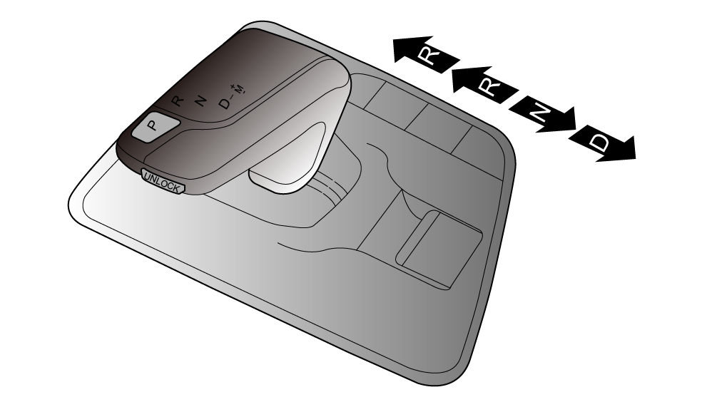 挂入R(倒挡)或推出R(倒挡)前,车辆必须完全停下来;在车辆移动中挂入R挡会损坏变速器。 R挡用于倒车。 |