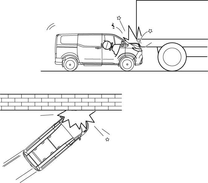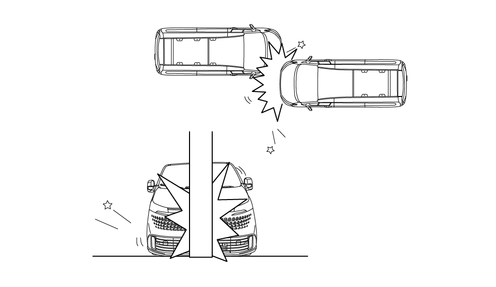 正面安全气囊设计为在严重的正面碰撞或与之相似的碰撞中展开。如下所述或相似情况,均会导致安全气囊展开。