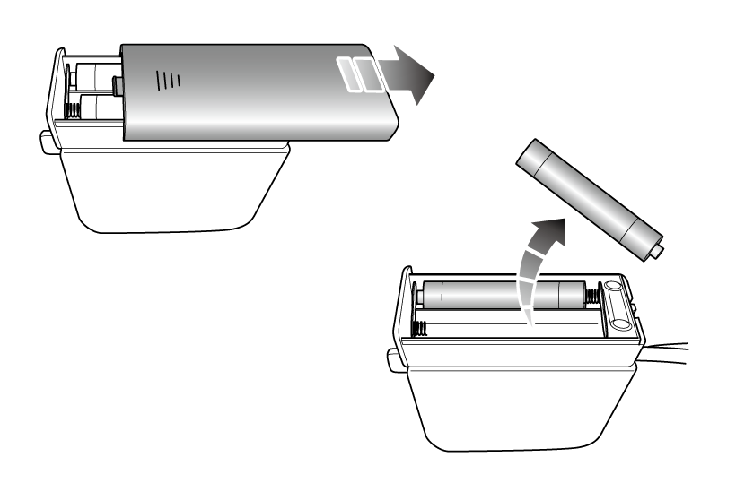 安装2节7#碱性干电池并盖上电池盖,安装时注意电池的正负极不要装反。