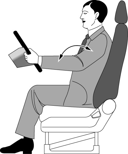 切勿使座椅过分倾斜。不要将座位靠背倾斜超过30°,这样您就可以在手臂稍微弯曲的情况下垂直坐立,且脊柱底部尽量朝后。