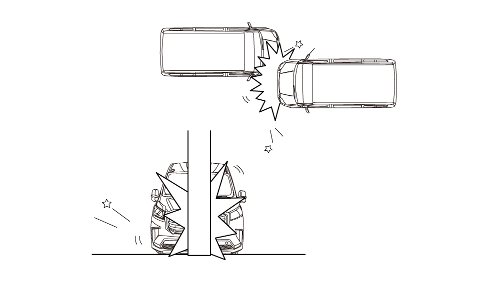正面安全气囊设计为在严重的正面碰撞或与之相似的碰撞中展开。如下所述或相似情况,均会导致安全气囊展开。