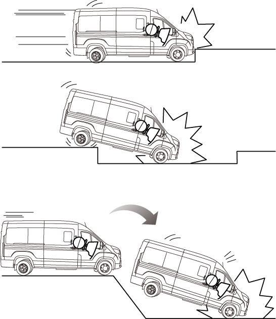 车辆底盘受到严重损坏时。如车辆与路边石、路面铺砌边缘或坚硬的表面发生碰撞时,跌入深沟或深洞时,或车辆跳跃后猛烈触地等均有可能引起底盘严重受损。