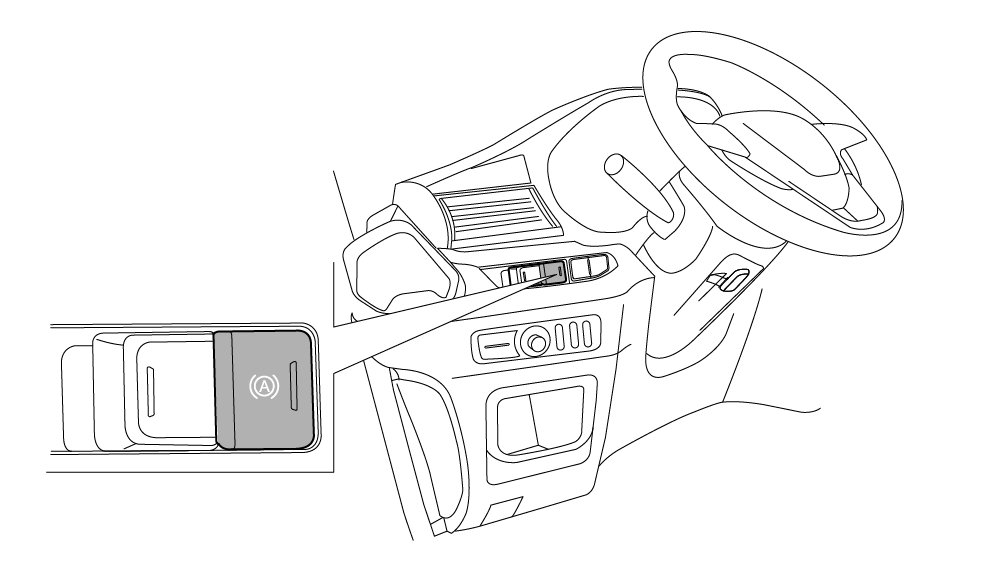 按下AUTO HOLD(自动驻车)开关,开关上的指示灯点亮,组合仪表中的“AUTO HOLD(自动驻车)指示灯(白色)”点亮。车辆静止后,当组合仪表上的“AUTO HOLD(自动驻车)指示灯(绿色)”点亮时,自动驻车处于工作状态,驾驶员可以松开制动踏板。