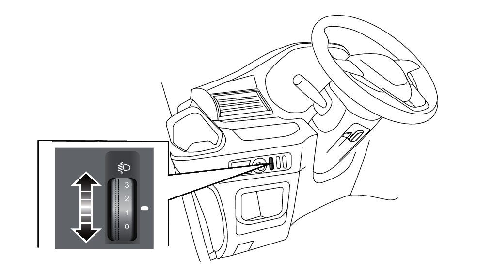 前大灯高度调节开关位于驾驶员侧仪表台上。