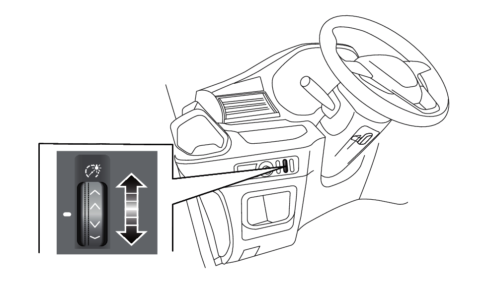 仪表板照明控制开关位于驾驶员侧仪表台上。