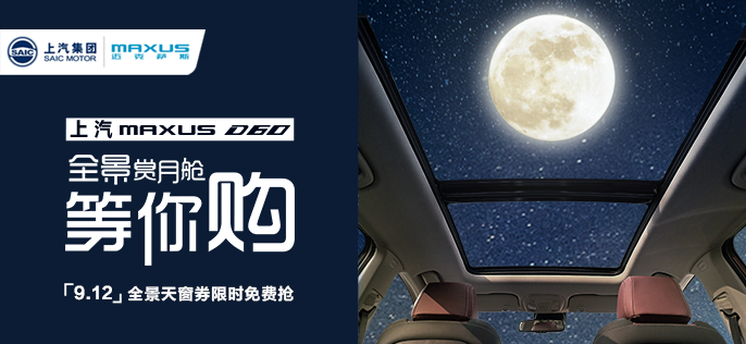 上汽MAXUS D60全景赏月舱等你购,「9.12」全景天窗券限时免费抢!