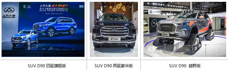 2017年4月19日,上汽大通在上海国际车展的舞台上,以“未来已来,畅行天下”为主题,推出了践行C2B业务模式的首款大规模智能定制SUV D90的量产车型。